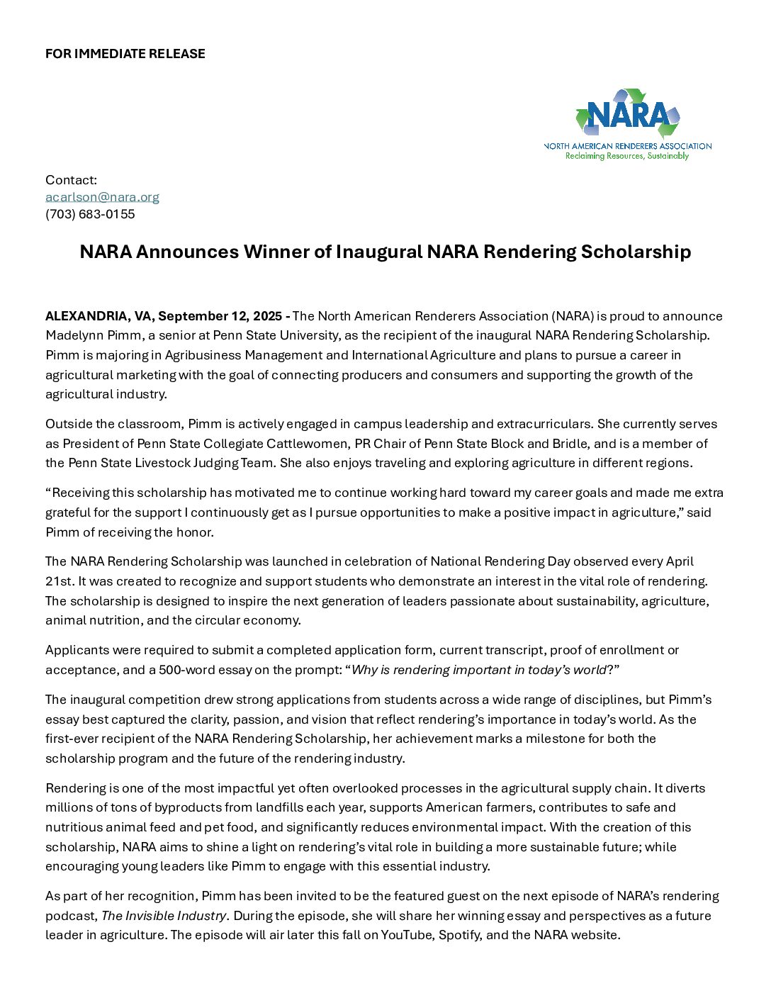 PRESS RELEASE: (4/17/2024) NARA Announces 2nd Annual National Rendering Day